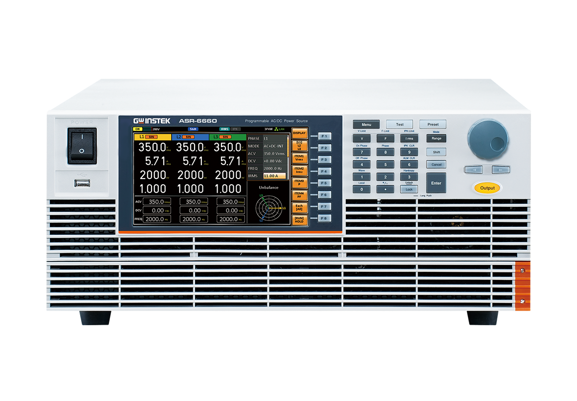 The GW Instek ASR-6660 is a high-performance programmable AC/DC power source from the ASR-6000 series, engineered for demanding power testing, simulation, and compliance applications. Designed to deliver up to 6.6 kVA of output power in a space-efficient 4U rack form factor, it supports flexible single- and three-phase configurations (1P2W, 1P3W, 3P4W) for diverse test environments.