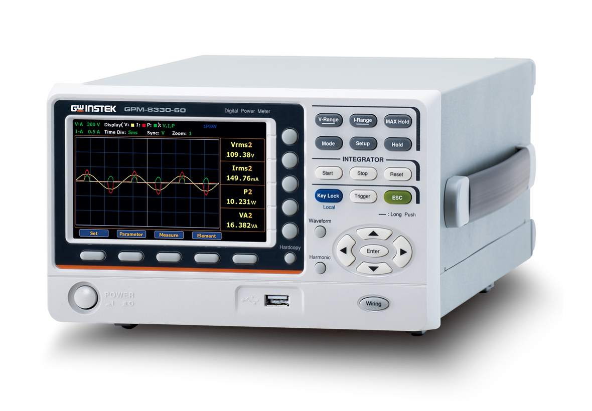 GPM-8320-60/GPM-8330-60 also feature waveform display capabilities (voltage/current/power), the integration measurement function, harmonics measurement and analysis of multiple orders (50 Hz / 60 Hz measurement complies with IEC61000-4-7 requirements), external sensor input terminals, and a variety of communications interfaces. These features help users achieve clear, convenient, and accurate power measurements, making them the most fully-featured and cost-effective power meters in the same category.