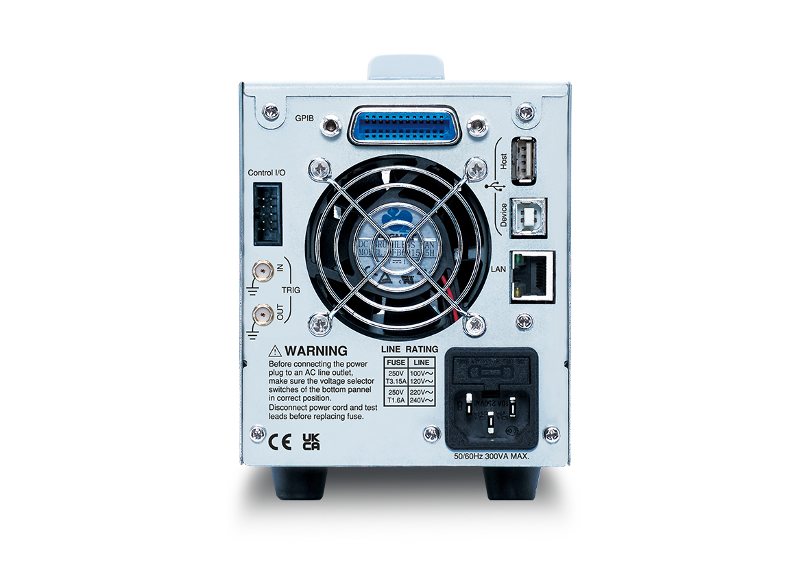 In terms of safety, the GPP-1000 series is equipped with built-in protections including OVP (Over Voltage Protection), OCP (Over Current Protection), OTP (Over Temperature Protection), and reverse polarity protection to ensure stable operation of both the device and the connected load. A front panel lock function is also provided to prevent accidental operation, enhancing operational safety. The communication interface supports USB-TMC/CDC and LAN, with optional GPIB available to meet remote control requirements. The series features a 2.4-inch TFT-LCD for clear data visualization, and is equipped with an intelligent temperature-controlled fan to effectively reduce noise and improve cooling efficiency.
