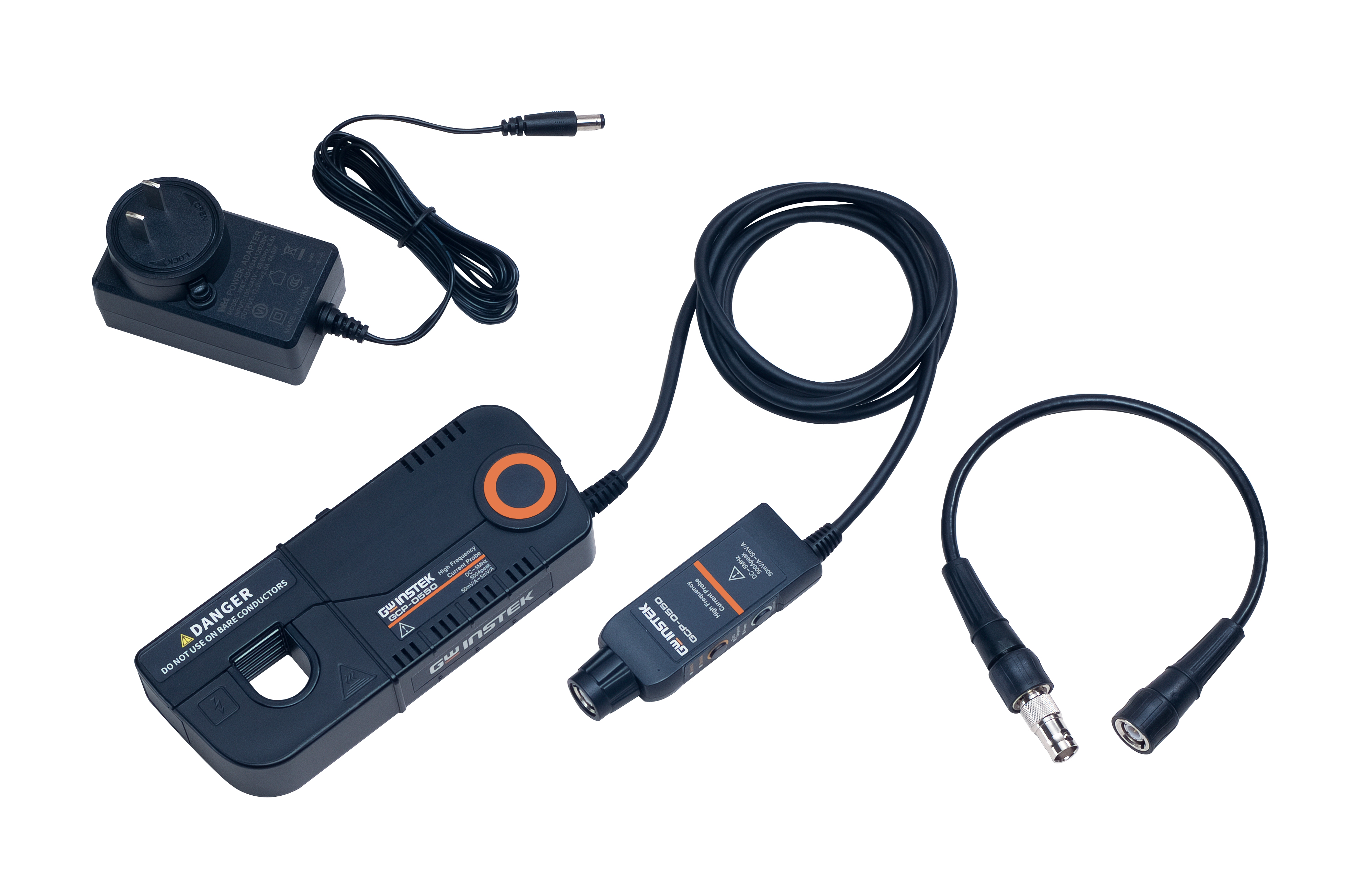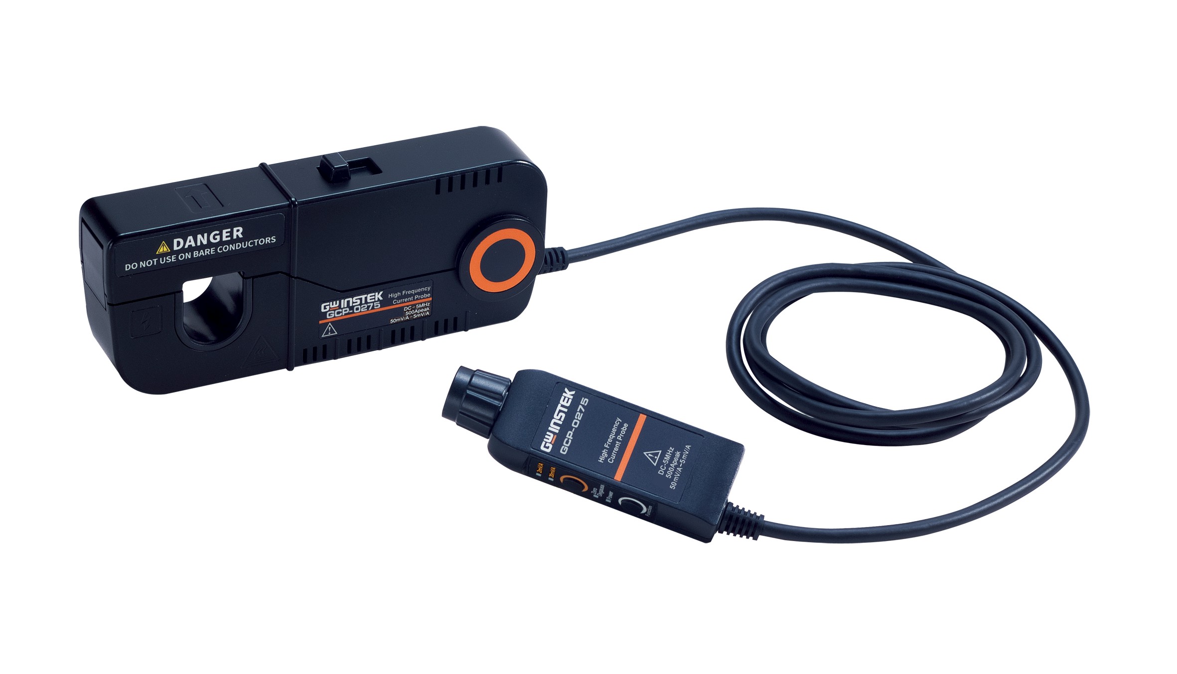 The GW Instek GCP-0275 is an AC/DC current probe for oscilloscopes, designed for accurate high-current measurements in power electronics, motor drives, and industrial applications.