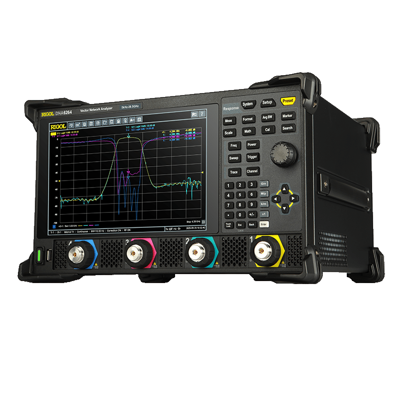 The Rigol DNA6204 is a high-performance 4-port Vector Network Analyzer (VNA) designed for complex RF and microwave measurements up to 20 GHz. With four fully integrated test ports and advanced analysis features, it enables full multi-port S-parameter characterization for differential circuits, balanced components, antennas, filters, amplifiers, and high-speed interconnects.