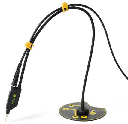 A versatile 80 mm diameter metall base plate that expands your workspace. It features through-holes for direct mounting in a wall or similar surfaces, enabling hands-free probing support away from the desk.